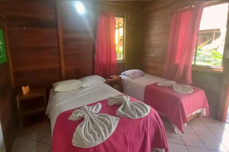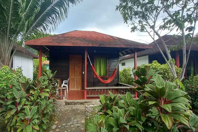 - Alojamiento en Capurganá, cabañas con aire acondicionado y terraza con hamaca en hotel Tacarcuna Lodge.